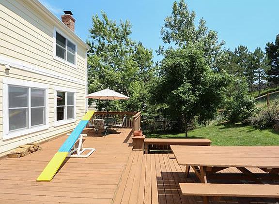GOLDEN, OPEN-SPACE, CITY VIEW -- please see this home in person! On over a third of an acre, this prime Heritage Dells home rests on a premium lot with mature trees and landscaping; it includes a stocked, custom-built koi pond, an extraordinary, three tiered deck with a drop in hot tub, and Denver skyline views from a mountainside fire pit. Your backyard is fenced in and ready for four legged companions and features views over adjacent foothill open space of Lookout Mountain and Apex. A real wood fireplace warms an open living room/kitchen floor plan on the rear side of the home; this custom kitchen remodel includes granite counters, pantry storage, and a built in recipe desk. Remodels and upgrades continue with bathrooms, Pella windows/doors, a newer furnace with humidifier, a 2015 sewer line, and new pavement. With so many enhancements, you can immediately enjoy quick access to trail systems, Light Rail, 470 & 70, downtown Denver (15 minutes), and Boulder (35 minutes).