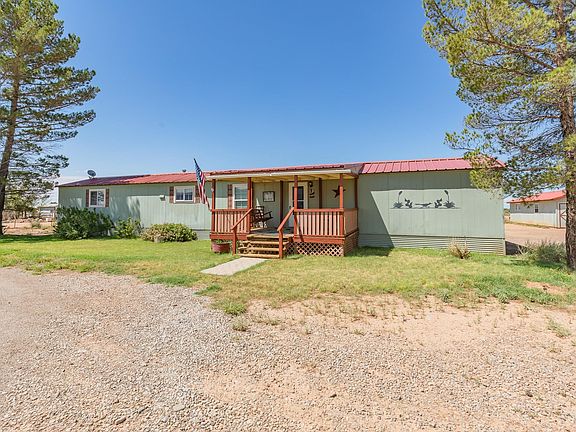 Enjoy stunning mountain views and country charm from this well-maintained, single-wide manufactured home sitting on 2.5 acres and featuring a large, separate workshop with power! The home boasts just the right amount of space, with 3 bedrooms, 1.75 bathrooms, and an added on bonus room. Refrigerated air, updated bathrooms, vinyl plank flooring, double-paned windows, and custom, hand-built cabinetry will certainly help you feel right at home. Sip your favorite beverage as you sit on the front or back porches year round and take in the gorgeous views and New Mexico sunrises and sunsets. To top it off, the home, workshop, and separate storage building are all covered with metal roofs. Check out the 3D tour today!
