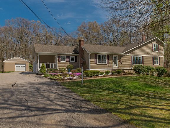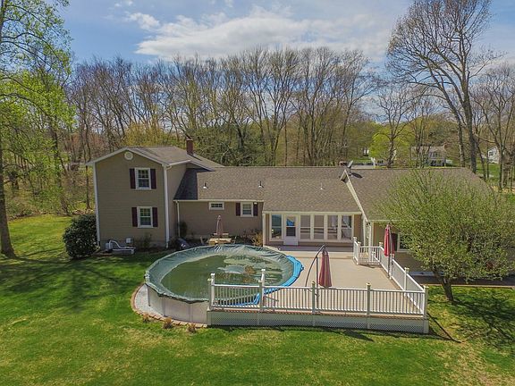 Vacation at home in this impeccably clean, bright, welcoming home, set back off the street on nearly two acres of privacy. A four bedroom, two full bath home with fabulous sun room overlooking salt water pool with azek deck and serene rear yard abutting woods. Granite & stainless kitchen with large sit at granite island opens to dining room. Living room has cathedral ceilings, two bedrooms on first floor, two bedrooms on second floor. Oversized family room with raised hearth brick fireplace in lower level along with storage area and overhead door for extra storage. Two car attached and a one car+ detached garage space. Professional landscaping. A magnificent opportunity. Move right in.