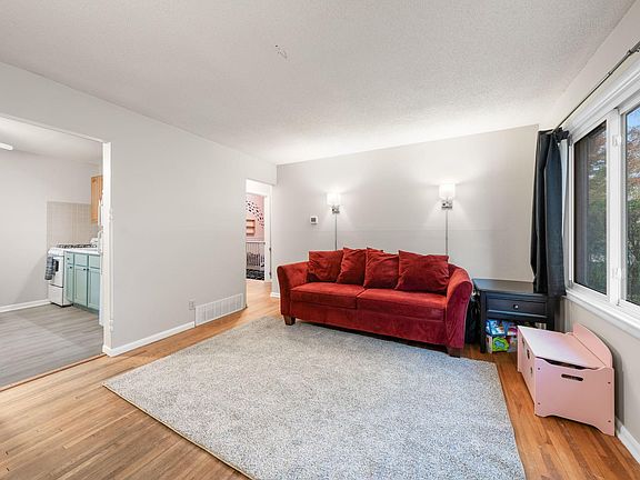 Take a look as this charming home! Step inside to find original hardwood floors, fresh paint and cozy spaces! The main level features 2 bedrooms and a full bathroom plus a living room and eat in kitchen with a neat in-sink dishwasher! The upper level hosts a half story loft bedroom and bonus space. Make your way downstairs to find an unfinished basement with laundry, lots of storage and functionality, ready for all of your ideas! Head outside to the patio right off the kitchen, which opens up into a fenced in back yard with a 10x10 storage shed and access to the awesome detached, insulated and heated, 2 car garage. The garage features a large 7x16 overhead door in the front and a single 7x8 overhead door on the back making it easy to pull tools and toys straight through. Behind the garage you'll find plenty of room for storage and parking your trailers, with a path that heads behind the property right to the Rice Creek trail system, perfect for the outdoor enthusiast. Situated on .23 acres in the coveted centennial school district and conveniently located for all of your needs!