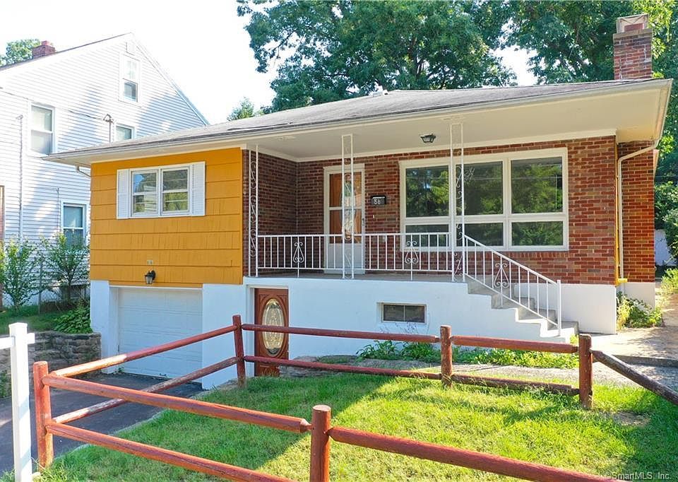 Come view this 3 bedroom, 2.5 bath raised ranch in Waterbury with attached under home garage and private driveway! Upon entering you will find a large living room on the right, with a fireplace that sits in front of a beautiful wood paneled wall with a matching mantel. This fireplace has a raised hearth and gray stone surround. Enjoy a gorgeous view through three grand, rectangular, side by side windows. This home features an eat-in kitchen with plenty of white cabinetry with silver knobs and off white appliances. The kitchen has windows looking into the den at the back of the home, as well as windows looking into the dining room which leads into the kitchen. The den is well lit with 6 large windows, 3 on the right of the room and 3 at the rear. Just off the den is a three season porch with eight windows and a rear door leading into the private, fenced in backyard. Make your dreams come true with this open layout basement. There is plenty of space down here and the possibilities are endless! There is a washer/dryer hookup behind two bi-fold doors and a half bath. Come book your appointment today!