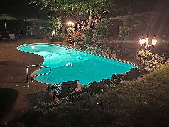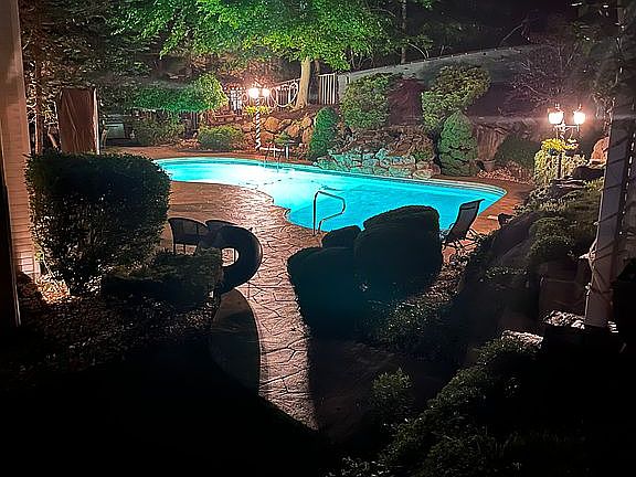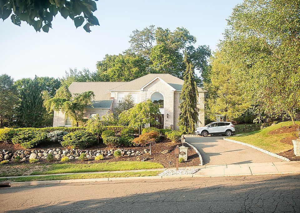 NO Realtors please. Luxurious Center Hall Colonial two story entrance foyer with chandelier motorized lift system. Finished basement with summer kitchen full bathroom, bedroom and very large rec room, heated garage, two Zone A/C, 5 zone heat, security cameras, security alarm. Hardwood floors thru out. Private back yard with Heated Built in pool and waterfall. Professionally landscape with mature trees. Both kitchens have stainless appliance. Main kitchen with granite tops bar area with wine fridge.