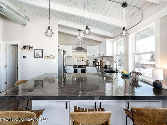 No restrictive Covenants! Horses allowed. Recently completely remodeled, and an easy walk to downtown Pinedale! This spacious home great for the outdoor enthusiast with ample space on a 1.86 acre lot, with water and irrigation ditch, pond and fire-pit. White Pine Ski resort is less than 15 min drive. Close to Fremont, Half Moon lakes. 4 bedrooms with an additional office space/bonus room and giant great room. Large primary bedroom with ensuite bath, large shower, and private deck. Insulated/heated 2 stall detached garage. G-instant hot water, LED lighting, Two fireplaces, Sprinkler system runs off ditch water pond. Main floor entry with ample storage/benches coats/boots and built-in ski racks. Bonus Dry cabin/bunkhouse w/ electricity, seasonal pond. Owner is Licensed Wy Real Estate agent