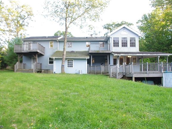 Large house with beautiful Brazilian wood floors all throughout. Kitchen with island and french doors that open out to sun room for entertainment, gas insert fireplace, or walk out onto deck to mountain views. Living room has bay windows, on the same floor 3 additional bedrooms and 2 baths. Master bedroom is huge, with accompany Master bath, and walk out deck opposite of sunroom deck. The ground floor on this bi level has additional room that can be used as a 5th bedroom also large family room with free standing gas stove and game room with sliders to deck. Also on ground floor, utility room access to three car garage, large laundry room. Sitting on this 1.3 Ac is also an outbuilding that is 24x20, two levels, with electrical service; could be use as storage, entertainment or workshop. Come check it out