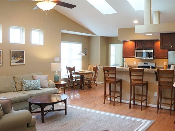 Welcome to Tavistock ! A desirable 55+ adult community. This 3 bd/2 ba attached home w loft offers spacious open floor plan, gleaming hardwood floors, cathedral ceilings and lots of natural light. Kitchen w stainless steel appliances, pantry, bar space for eat-in dining and breakfast nook. Kitchen is open to living room w skylights and Florida room. 1st Flr Master Bedroom w walk-in closet and master bath w double sinks. First floor also has 2nd Bedroom and laundry area. Second floor Loft w additional storage makes a perfect 3rd Bedroom or quiet retreat. One of the few homes w Basement (unfinished) and sliders to outside wooded lot. This home is freshly painted, move in ready and shows pride of ownership.