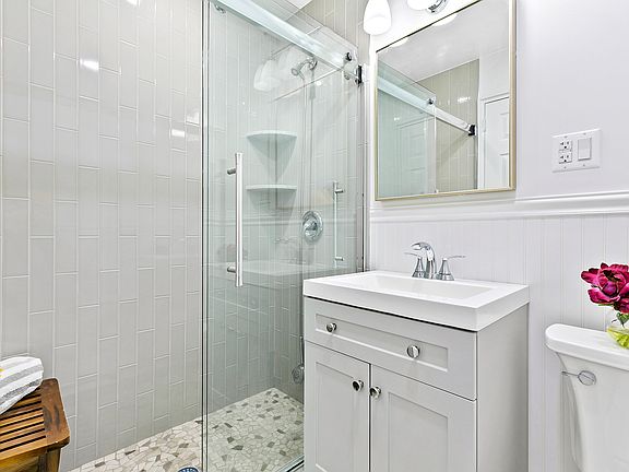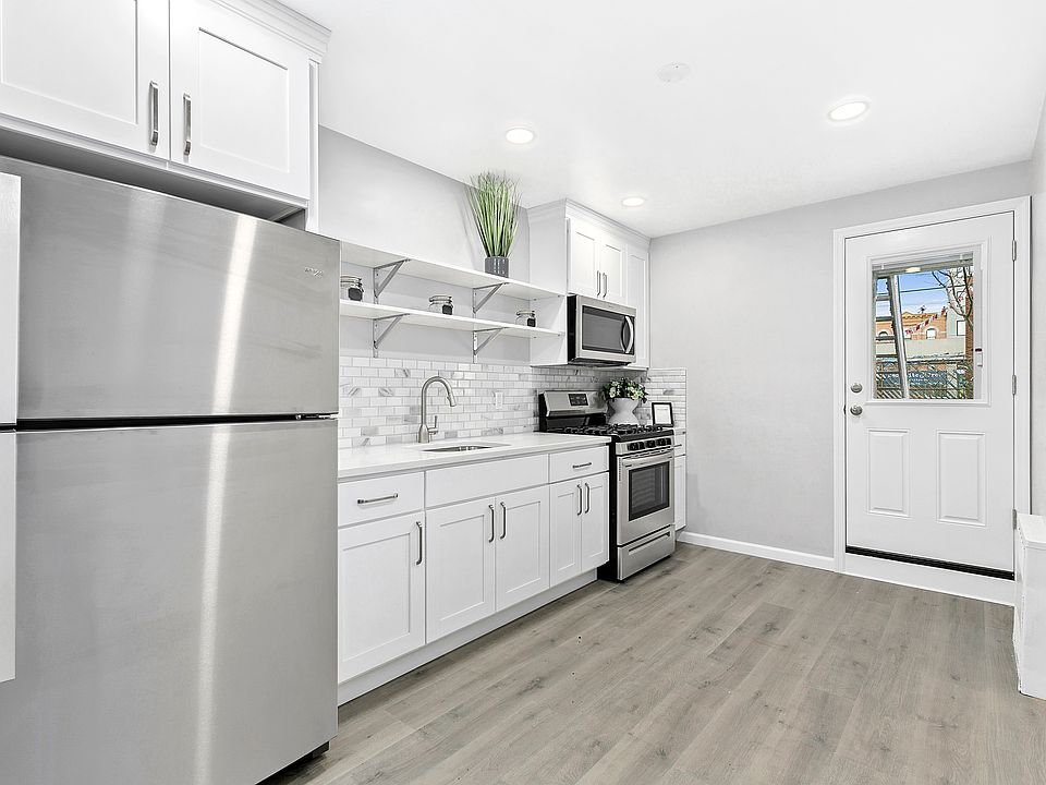 Beautifully finished gut renovated 1 bed, 1 bath with parking and outdoor patio space, a true RARE find!! Lovely 1 bedroom apartment with hardwood floors, recess lighting, stunning bathroom and kitchen AND patio space for those year round BBQ 's or just to get some fresh air on your hammock and eat al fresco. The home also includes your very own personal PARKING SPACE . Upon entering the apartment through your own personal entrance, you're greeted with a spacious, bright living room, the hotel spa inspired bathroom will help you relax the stresses away, if you enjoy cooking, the kitchen will inspire you more, cleverly designed with custom shelving, cabinetry, and gorgeous white quartz countertops. Located on a quiet tree lined block right off of Bay Ridges most popular shopping mecca, everything at your fingertips, from restaurants, shops, and transportation, after a day out on the town, come home, park your car and stroll into your beautiful home, and kick up your feet in your own little patio space. This apartment won't last long, just turn the key and Welcome home! Utilities Included, Gas, Heat and Hot Water. Small pet ok with owners approval. FEATURES 1 Parking Space All Utilities Included Back Yard Patio Space Modern Small Pet ok with owner approval