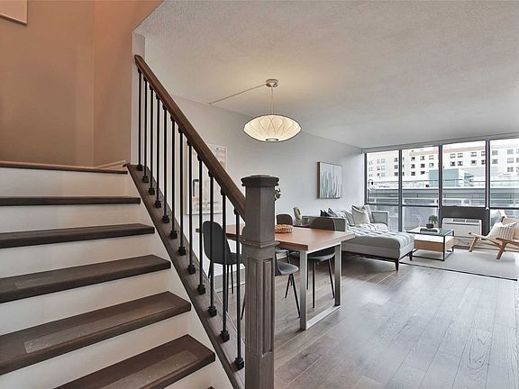 Spacious(1,051Sf)2 Bdrm,2 Story Unit In Quiet Intimate Boutique Bldg 1 Block East Of Yonge.2 Levels Of Ceiling-To-Floor Windows Sun-Filled Living Space With South City Views Along With Oversized Private Terrace.Recently Updated Custom Stairs & Handrails, Wood Flooring Throughout,New Light Fixtures,Window Coverings And More.Ample Storage Space With Locker Next To Unit & Includes Underground Private Parking.Steps From Ryerson, U Of T, Ttc, Shopping & Much More.