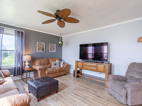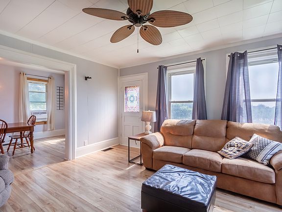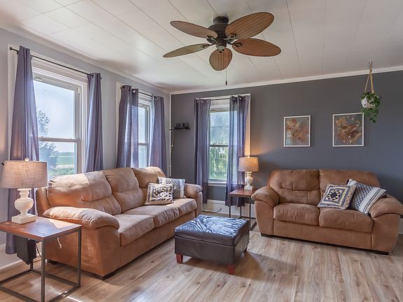 Nothing to do but move into this Beautifully updated 3 bedroom Farmhouse situated on 5 acres in Kingston. This home features a spacious living room with wood laminate flooring and an abundance of natural lighting which opens to a formal dining area. The completely updated kitchen boasts stainless steel appliances, stainless steel farmhouse sink, subway tile backsplash, pantry, and space that could be used for an eating area. The versatile main level office could also be used as a third bedroom. A full bath with double sinks and shower and an updated laundry room with laundry sink complete the first floor. Upstairs showcases two generous sized bedrooms. Relax on the deck overlooking the scenic country setting. Fire pit area. Pole barn. New: carpet upstairs (3 years), wood laminate flooring (3 years), all appliances (3 years), and 3 AC window units (2 are new in 2024 and 1 is 2 years old). Enjoy serene country living while still being close to modern conveniences, including the Interstate. Great home in a great location. Nothing to do but move in!