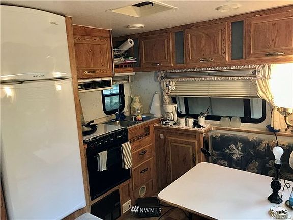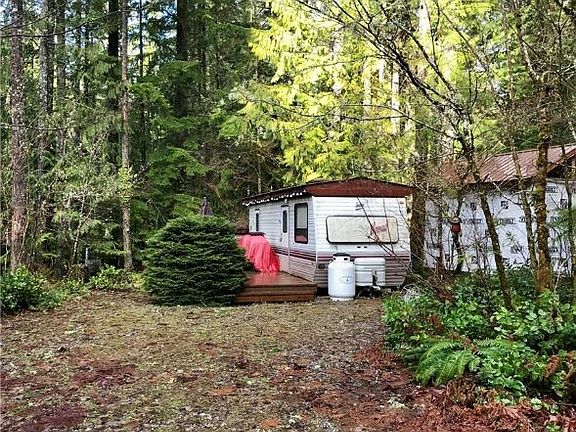 Large corner lot located inside The Glen at Maple Falls. Trailer is a 1992 26 foot Nomad which is in good shape with a secondary metal roof. Lot features a detached 8x16 deck, shed, and lots of room for parking or recreating. Use this lot as is, or it would be a great starting point for further improvement. The Glen is a recreational community near the town of Maple Falls, and is limited to 120 days per year.