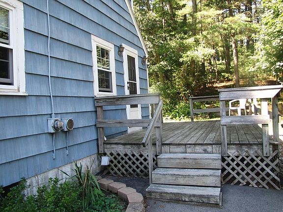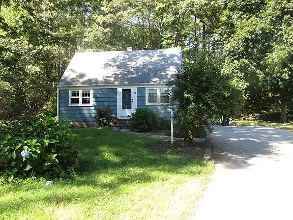 Charming 2-3 Bedroom Cape home on a side street with a paved driveway. Property sits on a spacious treed lot with a large wooden deck surrounded by nature & a short walk to both Big Sandy & Little Sandy Pond. Relax & enjoy the back yard by the fire pit. Full Bath on 1st fl. Open floor plan Kitchen/Living room area with a separate dining room (2 closets) that can be used as an additional bedroom. Hardwood floors & newer Harvey windows. Second floor offers 2 larger bedrooms and a half bath. Laundry hookup in full unfinished basement. Easy to Show!