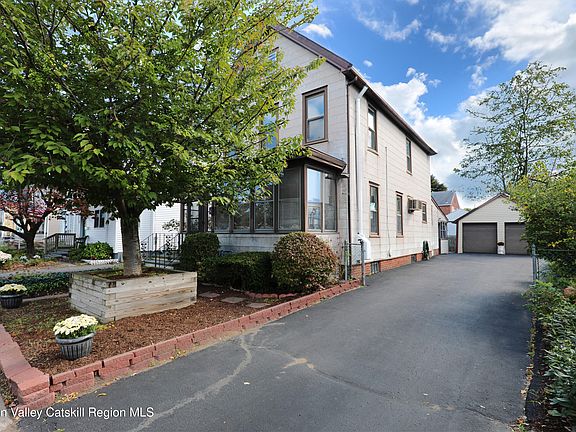 Charming & well maintained two-story centrally located in the City of Kingston. As you step inside the glass enclosed front porch you'll be greeted by a warm and inviting space. As you enter, you'll find original woodwork, tin ceilings and hardwood floors throughout most of the home. The main level offers an easy flow from room to room. The living room transitions seamlessly into the dining area making it perfect for gatherings and daily living. The spacious kitchen is a true highlight boasting ample cabinetry and a walk-in pantry that adds extra storage and convenience. There is also a half bath, laundry room and glass enclosed porch off the kitchen that leads outside. Upstairs leads you to three generously sized bedrooms, a full bath, small office/nursery and the finished walk-up attic for additional storage. A nice feature is the finished basement, providing flexibility for use as a playroom, hobby space or storage. Outdoors, you'll find even more to love. Relax, garden, or play in the front yard, while the partially fenced backyard offers privacy and a retreat. The two-car garage provides plenty of space for parking or storage, and the rear patio features Trex decking along with an awning, creating a cool and comfortable spot to enjoy warm summer days. Conveniently located minutes from all major shopping, Uptown, and Downtown Kingston (offering amazing eateries/shops and galleries) Come take a look! Updates include newer 100 amp electric box, some newer updated PVC lines and a radon mitigation system