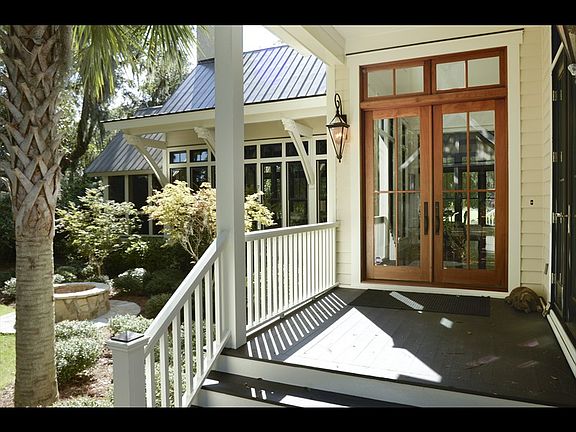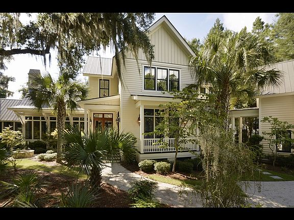 This gorgeous custom home is privately tucked away in the beautiful May River Forest neighborhood of Palmetto Bluff. Offering 4,691 conditioned square feet of living space and located on the 12th fairway of the May River Golf Course, this fabulous residence includes a main home, guest apartment above the garage, and separate guest house. With cool exterior colors, standing seam metal roof, expansive windows and porches, and lush landscaping highlighted with palmetto trees and ancient live oaks, there is no doubt that the architecture and design of this estate was inspired by the South Carolina Lowcountry. What makes this home so unique, though, is the unexpected interior features that combine this quintessential Southern exterior with a more "rustic meets the contemporary" interior. Exposed wood beams in a cathedral-style living room encased by floor-to-ceiling windows accent the wood floors and grand stone fireplace. An elegant gourmet kitchen marries dark and light colors, providing a clean and comfortable ambience. It features a custom kitchen island, cabinetry and lighting, Viking appliances, and wine pantry, among other refined features that give a pleasant nod to the contemporary, making a bold yet tasteful statement in this traditional Lowcountry neighborhood. The second floor master suite provides a true retreat for future owners with a private balcony, gas burning fireplace, large his & hers walk-in closets, and spa-like bathroom with tub and shower. A first and second floor guest bedroom, additional room above the garage and detached guest house with kitchenette offer relaxing and suitable quarters for family and friends. As the ultimate home for entertaining with four porches, built-in grill off the kitchen, back patio with views of the golf course and a built-in brick firepit in the courtyard, this one of the most spectacular homes in Palmetto Bluff. Designed by Wayne Windham Architect, it was the recipient of the notable 2008 Grand Aurora Award for Best in State and Best Custom Home, as well as the 2008 Best In America Living Award for Home of the Year (National), Best In Region, and Best One of a Kind Custom Home. Palmetto Bluff is situated in the Lowcountry of South Carolina between Charleston and Savannah, Georgia, Palmetto Bluff is the largest remaining waterfront property on the East Coast and part of the Crescent Communities residential real estate portfolio. Currently evolving as a residential community and conservation preserve, the 20,000-acre development is surrounded by 32 miles of riverfront and features extensive nature trails; a vibrant Village center complete with river access, boat storage and canoe club; a distinctive food and beverage program; the AAA Five Diamond Inn at Palmetto Bluff; and a Jack Nicklaus Signature Golf Course. An array of southern-style residential neighborhoods ranging from multi-million dollar legacy family compounds to more traditionally sized, single-family lots are currently available. For more about Palmetto Bluff, please visit www.palmettobluff.com.