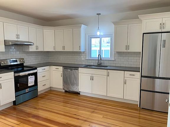 Convenient in town location....spacious 1st floor of a house with 7 rooms ... including newer white kitchen with quartz counters and stainless appliances, 2 sparkling new full baths and 2 bedrooms with walk in closets, private primary suite ... and an office....spacious living room and breakfast nook/dining room .... and mud room....newly refinished wood floors throughout and freshly painted walls! There is gas heat and central air conditioning as well as a washer and dryer for exclusive use in the basement and a storage closet. 1 garage stall is also included along with parking for 2 cars in the driveway and a large and lovely backyard! Located in the center of Barrington, this property is within walking distance to shops cafes, banks, the library, YMCA, bus route and more!! NO PETS and NO SMOKING No pets and no smoking in or on premises.