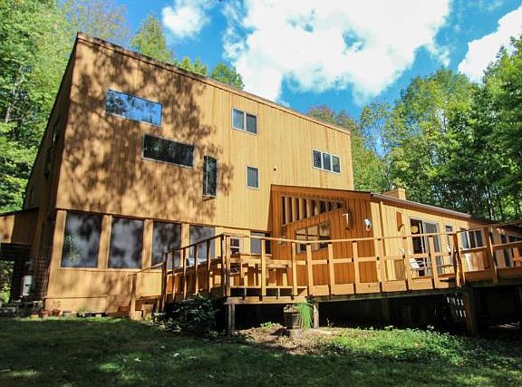 This secluded 4 BR, 2.5 bath cedar contemporary is close to Cornell and has open free-flowing living spaces. 1.72 Acres. Lots of light, cathedral ceilings, stone gas fireplace, wrap-around deck and screened porch -- great for parties and cookouts! Enormous master suite, office, cozy loft! Main level laundry. 30 year roof, freshly painted. Live next door to 111-acre Ellis Hollow Nature Preserve â hike, cross-country ski, go snow-shoeing! Ithaca schools.