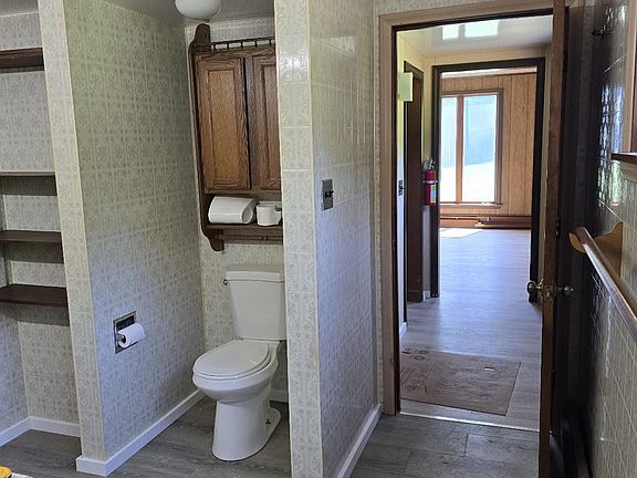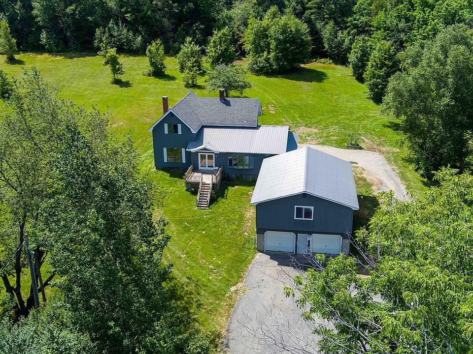 New England Style Farmhouse with 5.01+/- acres with 2 car attached garage. Primary bedroom, bathroom & laundry room all on the first floor. Two bedrooms, full bathroom on the second floor. Brick fireplace located in the dining room, large living room and two car garage 2200', with unfinished second floor 30'x40', potential for an apartment. Nice yard overlooking the mature apple trees and an occasional deer or two! Schoodic, Sebec Lakes just a short drive. Recreational trails located nearby.