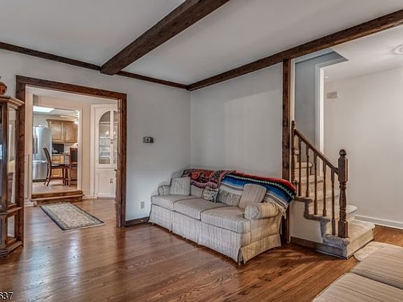 5 bedroom, 2 bathroom custom home w Generac generator. Kitchen w oak cabinets, center island breakfast bar, pantry, SS appliances and recessed lighting. DR w built-in cabinets. LR w beautiful stone surround gas log fireplace. Gleaming hard wood floors. Freshly painted. New carpets in BR 3 and hall. New vanities and light fixtures in baths. Enclosed front porch area leads out to deck. Large patio off of kitchen w walkway to open backyard area. First floor MBR w sitting room and HWF. Basement w finished workout room. Security system with cameras. Optional lake privileges with year-round activities. Close to public transportation, shopping and restaurants in downtown Denville. PWPS, natural gas, and ductless mini split cooling. Addt lot 627 .066 acre included in sale.. this is not a shared driveway.