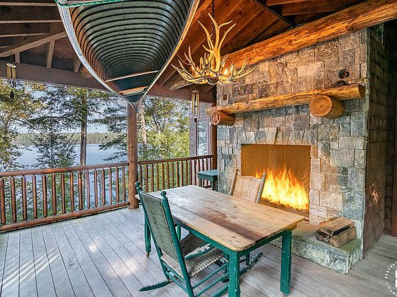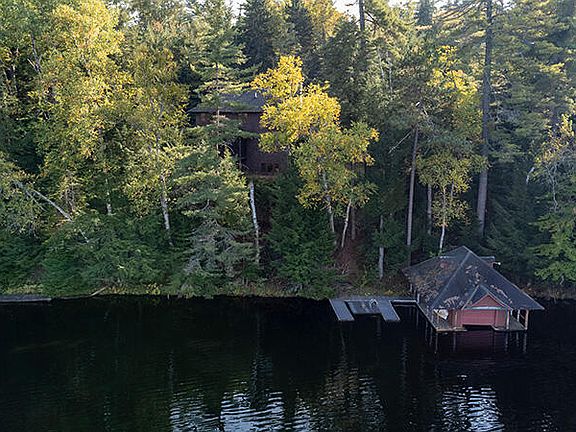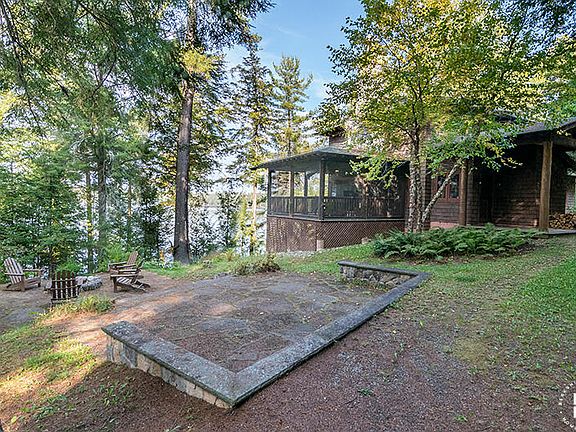 Camp Wildwood, part of a Gilded Age Great Camp ( Camp Hoff), is one of five camps on Lower St. Regis Lake, part of the prestigious St. Regis chain. St. Regis Yacht Club (founded 1897) hosts a racing series, including its iconic Idems. The three-level 3,280 sf Main Lodge was custom built on a wooded bluff in 2009 for year-round use and boasts lake views from every room. The great room and attached screened porch feature matching stone fireplaces. The porch and screened grill deck add 400 sf. The kitchen has stainless steel appliances, marble countertops and custom 14-ft tiger maple bar and matching island. The Main Lodge has two bedrooms, two bunk rooms, four bathrooms and a den. Two Sleeping Cottages, a Game Cottage and an Office Cottage date to the 1890's. The camp has a one-slip boathouse, a two-car Garage (indoor basketball court) and lean to. The Camp is being sold partially furnished with several unmotorized watercraft. The owners 20-ft, 225-HP Chris Craft is available for sale.
