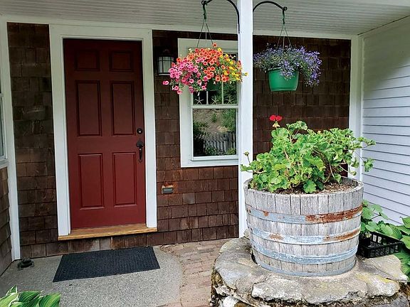 - Exterior Features: Porch, Deck, Deck - Wood, Gutters, Professional Landscaping, Garden Area, Stone Wall, Porch - Screened, Fruit Trees