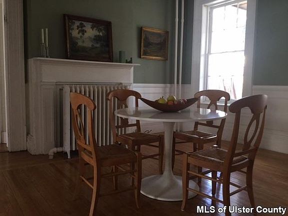 Uptown Kingston is a booming, vital place these days. There is an influx of new creative people in both the work and live populations. This charming antique brick home is currently set up and zoned for an office downstairs and a small two bedroom residential rental upstairs (cool attic with stairs and a semi-round window in the front). As many viewers will see it, this building could make a fantastic "town-home" in the midst of the Stockade District; affording walking to everything, including bus to NYC, buses of UCAT, many top restaurants and pubs, art galleries and music venues, banks, pharmacies, and a supermarket. This could, to some, be like living in an upstate Greenwich Village. Currently set up as a 5 room office, with large back porch and yard downstairs, one can easily envision LR, DR, kitchen, library/den, and bedroom from those rooms. In fact, we have staged the space to assist in that vision. Several, now non-functional fireplaces would make wonderful centerpieces with the newest, state of art sculptural gas inserts which heat rooms and require no venting. They are like works of art, not pretending to be burning logs.