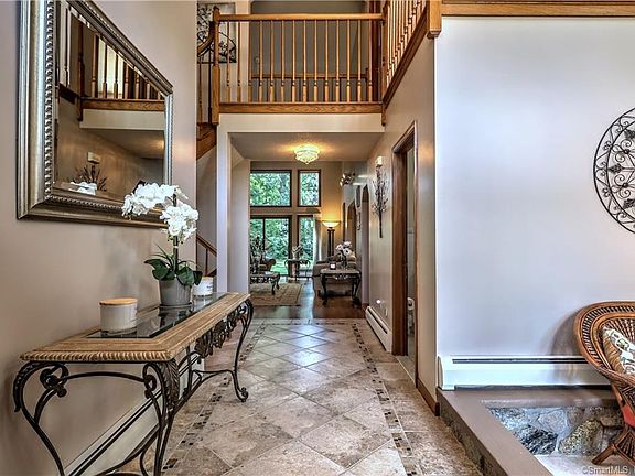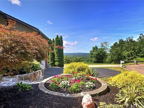 The Pride of Owneriship Abounds in this Custom Built Contemporary! Dramatic foyer boasts vaulted ceiling heights, sunken den with vaulted ceilings adorned with two story windows, living room appointed with impressive fireplace, vaulted ceiling heights, a wall of windows, SGD to outdoor living space and an open flow to the formal dining room, and remodeled eating space kitchen with breakfast bar, granite counter tops and stainless appliances. An office with sliding glass doors to outdoor patio, half bath, and lots of gleaming hardwood flooring complete this level. The upper level features primary bedroom with french doors to balcony overlooking the sunken den, sliding glass doors to private deck overlooking the lush back yard, spacious full bath with shower and jetted tub, walk in closet and hardwood flooring. Two additional bedrooms both appointed with hardwood flooring and second full bath complete this level. The lower lever offers family room, spacious recreational room with wet bar, pellet stove and half bath with laundry. Wait there is more! Above the 2 car garage is yet another room perfect for second home office or multi generational family space. Additional amenties include Anderson windows and doors, central AC, wine cellar and nestled on landscaped lot offering patio, deck and storage shed. This amazing home is conveniently located just mins to multiple hospitals, restaurants, shopping, Metro North, Interstates 84 & 8 as well as Routes 69, 63 & 68!