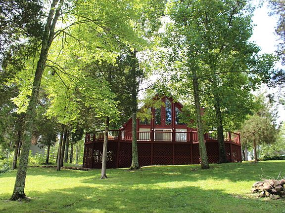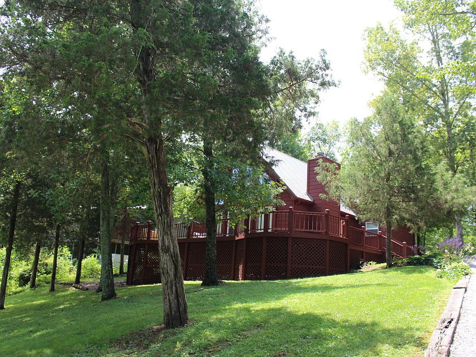 Newly remodeled, this beautiful 4 bedroom 2 bath lakefront A-frame home is waiting for your boating, swimming and fishing pleasure. The great room features a cathedral beamed ceiling and stone woodburning fireplace and is open to the dining area and fully equipped kitchen. The open floor plan provides ample space for large family/friend getaways. The 4 bedrooms and 2 baths can sleep 16. Newly remodeled kitchen with new cabinets and granite. New stainless appliances. Entertain or enjoy the view of the lake from the spacious 40'+ wraparound deck with new 300sqft porch and second fireplace. The expansive view from deck faces the lake with beautiful view of quiet cove and swim area. Dock included with COA approval. You and your guests can launch your boat at Peter Cave Marina. Easy access to fuel, snacks and ice access for a day on the lake. The beautiful gentle slope to the lake includes a fire pit for your family to enjoy. Plenty of parking for cars in the double wide gravel driveway. Conveniently located off Highway 737, Peter Cave Shores is only 7 miles from Leitchfield and 15 minutes from Western KY Parkway. This well maintained home features new heat pump/furnace and thermostat in 2015, new roof and gutters 2012, new exterior paint/stain, entry door and hardware June 2016, new hot water heater 2014, new sliding deck door 2013, new screened porch and kitchen in 2018 and much more!