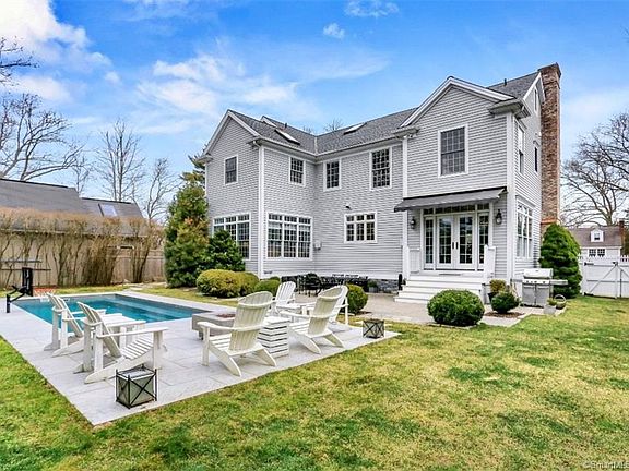 A short walk to the local beaches, town marina and downtown shops and restaurants and only 0.9 miles to one of the two Metro North train station - located in the very heart of the most coveted Fairfield Beach area. Known for its top notch schools -just steps to the award winning Sherman School. Stamped concrete driveway, new covered porch, irrigation system. This absolutely beautiful and sizable colonial (built by a builder for himself in 1997) can possibly offer 4 or 5 bedrooms! Open floor concept on main level consists 9+ feet ceilings throughout and boasts the great room (gorgeous updated eat in kitchen, dining room and living/family room) with woodburning fireplace and french doors to incredible back yard patio with firetable, heated in ground pool, 2 patios & outdoor shower. Also on the main level is the roomy but so cozy sunroom/office/den with tons of divided light windows and fabulous views of the back yard oasis. Just beyond is the long pantry with tons of storage, washer/dryer and powder room. Upstairs you'll find 9+ft ceilings, a super oversized master suite, with sitting area with gas fireplace, large bathroom with jetted tub, stall shower, double sinks and vaulted ceilings, large walk in closet. 2 large add'l bedrooms w/ jack-n-jill bathroom. Don't miss the large office w/french doors that could possibly be used as a bedroom (4!). Newly dormered, heated, finished third floor is light and bright with full bathroom - possibly yet another bedroom (5!).