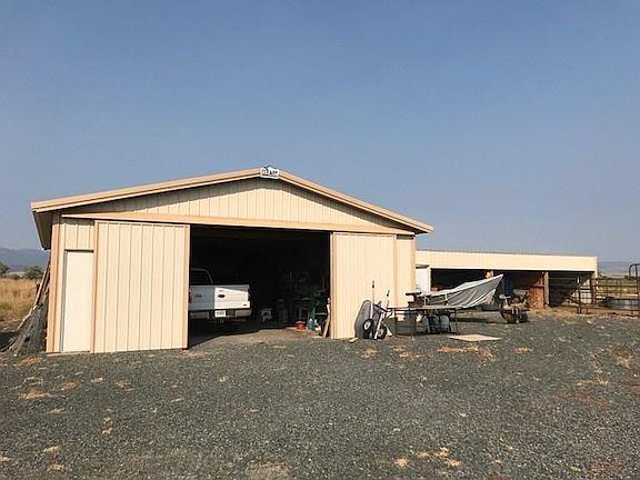 Country living a mile from town. This 4 berm, 2 bathroom home sits on 7.76 acres with NO covenants. There is a 30 x 40 shop, loafing shed, fenced pasture, backroom, . Four pastures fenced with water to them.The views are 360 degrees