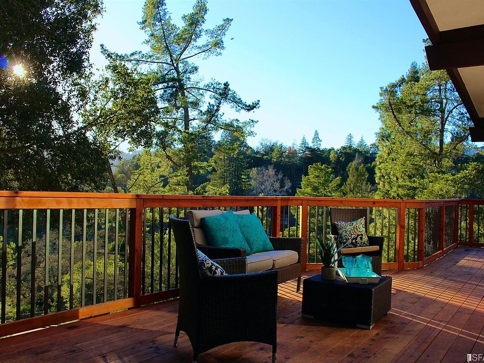 In the Orinda Country Club Area, Cathedral beamed ceilings grace the interior of this stunning home. Great room/formal dining with floor to ceiling stacked stone wood burning fireplace. An Enormous kitchen with deep warm tones to match the beams, generous island with seating, wine cooler, pantry, SS appliance pkg, sitting and dining area make this the king of kitchens. 2 levels of decks with 7 sets of sliders complete The Tree-house effect. Great Schools that is a plus. Come see this complete fantastic remodel, situated on a gentle hillside!