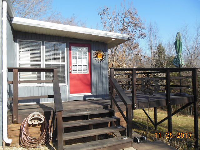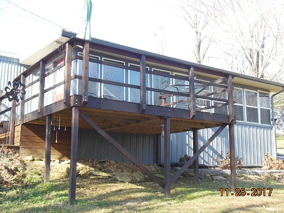 Located in quiet area, with only four homes total on our end of the road. Farm land all around in the front and property is adjacent to Corp of Engineer property. Large lot which has been cleared almost to the COE red line. Many updates in past two years, includes new metal roof, painted inside and out, new flooring throughout and on attached porch, plantation style blinds throughout, new steel entry doors, lighting, All appliances purchased in last two years will remain. Updates to kitchen and bath. 10 x 10 attached deck, new small walkout porch on other end. Two huge party decks under shade trees with rope lighting. Circular gravel drive will accommodate multiple vehicles. Property sits on the lake cove and is a short walk to your dock to remain with COE approval. Lots of new landscaping! Only a short distance to the boat ramp.