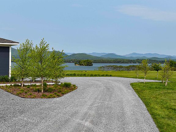A drive lined with maples leads to this lovely contemporary home on ten acres in Panton. Whether one enters the home through the breezeway or the front door, dramatic views of Lake Champlain and the Adirondack Mountains to the west delight the eye. The main floor of this light-filled home features a dining and living area that flows onto a porch facing the lake. Slate patios and perennial gardens, designed by Distinctive Landscaping, interconnect the east and west sides of the house. A gently-sloping lawn leads to a boat access, a dock and over 400' of lakeshore. The property is situated ten minutes south of the renowned golf and dining at Basin Harbor. The Lake Champlain Bikeway provides miles of bicycling along country roads. The ski resorts of the Green Mountains are an hour and a half drive to the east. This home, completed in 2018, has state-of-the art mechanical systems, which makes it ideal as either a primary residence or a second home. The level lawn is perfect as a play space for young children. The porch and gray stone terrace facing the lake offer a gracious and relaxed setting in which to enjoy magnificent views of the lake. This is an opportunity to own a property with ample acreage on Lake Champlain, in an exceptionally beautiful setting.