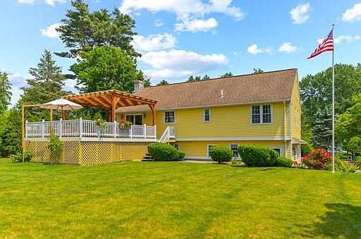 LAKE VIEWS: This 3/4 bed raised ranch is above-average in every way. Nestled on a loop overlooking Mansfield's Bungay Lake, this abundant property is in bloom all year long with roses, ferns, fruit trees/bushes (apple, peaches, cherries, prunes, grapes, blackberries), and more! Incredible pergola and 384sq ft deck overlooks gardens and water for the loveliest sunset entertaining. Former one-car garage is currently a 4th bed/office w/large closet but could be converted back easily. Main level features living room w/cathedral, beamed ceiling, open to DR w/sliders to deck and updated white + granite kitchen. Down the hall, 3 beds + full bath. Lower level storage abounds w/game room, family room w/wood-burning fireplace and built-ins, and office/bed, plus full bath w/laundry. Brand new heating system; WH has lifetime warranty. Whole house water filter. Newer roof, Harvey windows, new interior doors, ceiling fans, paint. Central air new in 2020. Showings start Saturday 6/12!