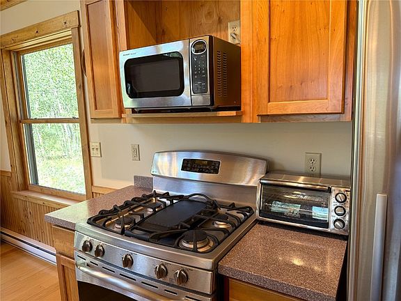 PRICE SLASHED!! Fully furnished ranch style cabin is situated on a level lot with LAKE VIEWS and is less than 1 mile off pavement. There is a WALL OF WINDOWS in the living room and kitchen looking out into the aspen forest. Cabin features wood floors, SS appliances, breakfast bar, pantry / coffee bar, solid surface countertops in the kitchen, gas range, vaulted T&G ceilings throughout and 2 freestanding natural gas stoves on thermostats. Primary suite has one of the freestanding stoves for beautiful ambiance, decorative open area ledge above closet, ceiling fan and granite countertop in the full bathroom. Cabin features an office / open area between the bedrooms that could be used either as an office, game area or family room spot. Cabin is cedar sided and has a large covered deck, metal roof, circle drive and shed. Gated community has 7 stocked fishing ponds with private fishing rights, numerous trails leading into National Forest and easy year round access. Warm Springs is on a community water system so no dealing with low producing wells. Dues cover all water usage, trash, road plowing and road maintenance. All this and only 30 minutes to Breckenridge.