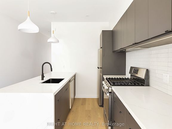 The ultimate urban condo alternative. Welcome to this modern, light filled, well designed 2bedrooms + 1 bath main floor unit. Comes with heated concrete floors, large windows, high ceilings, ensuite laundry, full size stainless steel kitchen appliances and your very own private patio. Explore fantastic Roncesvalles, Queen Street West, and trendy Dundas Street all close by. TTC and Subway nearby or Street parking available with permit purchase. The area offers the convenience of shopping, groceries, restaurants, galleries, parks, coffee shops, banks, and schools. All your daily needs just steps away.