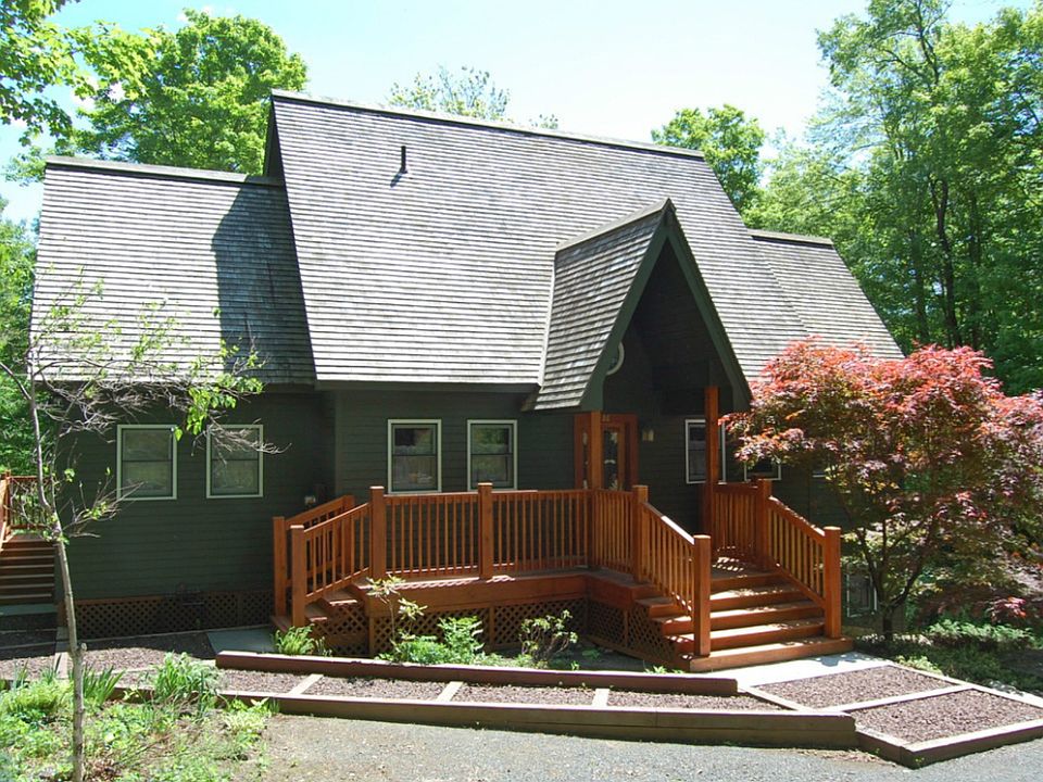 Woodland Paradise! Move-in ready 4 Bedroom, 4 Bath contemporary on nearly 12 beautiful acres nestled against the Westfield River. Open floor plan with mahogany floors, gourmet kitchen with cherry cabinets & marble countertops, 1st floor bedroom, 2nd floor suite, 4 full baths, lower level with guest kitchenette, 3 levels of open deck with screen porch, radiant heat, cedar shake roof.