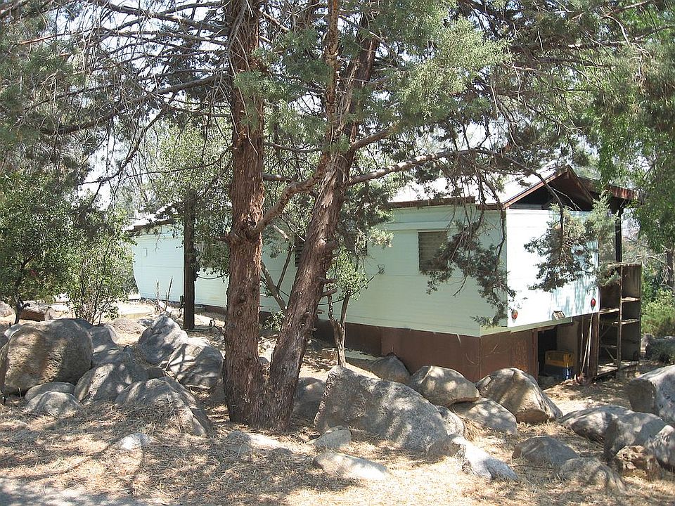 Those who like the old vintage style, this little fixer is for you! Small vintage trailer 1 bedroom 1 bath with another room that could be a bedroom or office. From somewhere in the 60's, yet to be confirmed, on a lovely tree studded corner lot. Trailer goes with the lot. Lots of large decorative boulders surround the property where the road curves. Has a cute vintage pink stove and pink sink. This is a great fisherman's get a way and definitely needs some TLC. Don't let this little charmer get away.