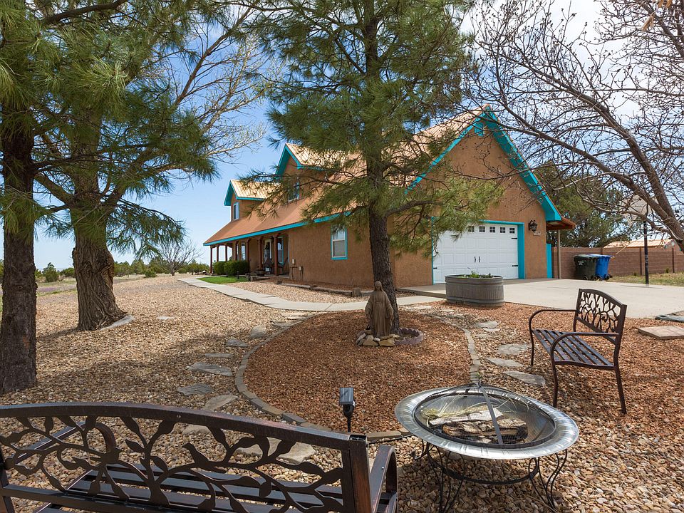 Do you want to feel surrounded by mountains on your own 5 acres, while still living close to everything practical and convenient? 86 Madole Rd offers this carefree lifestyle right in the heart of Edgewood. This Northern New Mexican 5 beds +office, 4 bath home exudes radiance and pride of ownership wherever you turn. Painted top to bottom inside with a complete stucco re-coat & lots of improvements including fixtures and lighting, are only a few special upgrades since ownership. See full list. Fiber optic internet from PLATEAU, Entranosa water, natural gas, soaring ceilings, open floor plan, & downstairs master are enough, yet homestead gardens, workshop, stalls, sunsets on the front porch, and the big blue sky are what bring people together. One step in the front door and you are home.