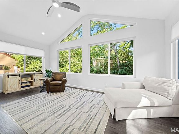 Just about every square foot, inside and out, of this beautiful ranch home has been updated in the past few years...over $480,000 in improvements! Unheard of value will be realized by the next owners immediately! The open main level has soaring vaulted ceilings & a gorgeous 4-season room with remote-controlled blinds, allowing for exceptional views of the woods behind the home. Updated laminate plank floors run throughout this heart of the home for low-maintenance living. The chef will love the kitchen updates, with granite counters, subway tile backsplash, 42" soft-close cabinets w/champagne bronze hardware & stainless steel appliances, including a 5-burner range w/double ovens & refrigerator, which stays. Both main floor bathrooms have been beautifully updated, including the primary suite with frameless glass shower doors & impressive tile walls, as well as a walk-in closet w/built-in storage. The walk-out lower level has been finished to include a large rec room, 4th bedroom with a Murphy bed, powder room & walk-in cedar closet. Recently updated main level windows, roof & skylight, vinyl siding, exterior doors & HVAC system. Enjoy the fenced back yard from the oversized patio with stunning professionally designed landscaping. Located on a quiet cul-de-sac offering easy access to I-44/141 & great shopping, dining & conveniences. Near Lone Elk Park, Buder Park & more for fun hiking, playgrounds & adventure. Rockwood (Summit High) Schools. Don't miss this one! See it today!