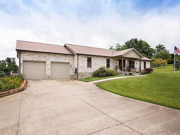 Looking for a quiet setting? Try this brick ranch with a metal roof on 3.48 acres, located just inside the Trimble County boarder, about 8 minutes from I-71. You're sure to enjoy the peaceful view of the pond from the covered rear deck OR tinkering around in the pole barn that can hold up to 4 cars. Inside, this home offers an open split floor plan. The kitchen looks over the dining area and living room. It offers plenty of cabinet space, stainless steel appliances, electric cook top and entry into the 2 car attached garage. The spacious master suite has a large bath attached with a jet tub and separate shower. The 2 additional bedrooms are of good size and share a full hall bath. Outside, is an above ground pool and fenced in rear yard. This home TRULY has so much to offer!