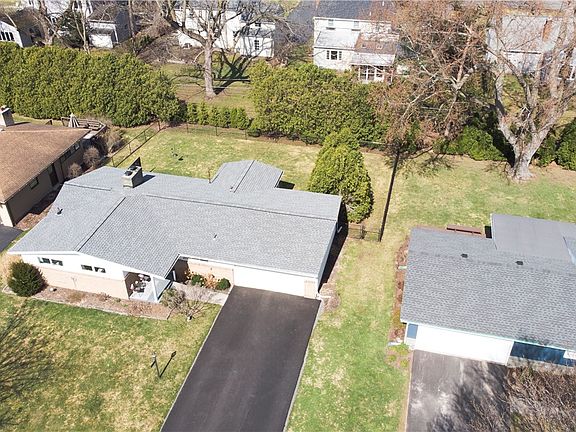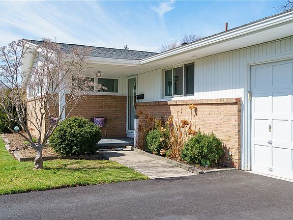 No detail or update was overlooked in this fantastic Brighton ranch! Impeccably maintained, thoughtfully redesigned with comfort and style, there's nothing left to improve here! STRONG mechanics: roof a complete tear off in 2022, driveway completely redone/widened 2024, hot wtr tank new 2022, furnace 2014, newer thermal windows throughout, exterior painted 2024-over 63K in updates/improvements! Front portico allows for a seating area & offers shelter from the elements when greeting guests. Inside the hardwood flooring is pristine, runs throughout the kitchen, LR/DR and bedrooms. Wood burning fireplace is a lovely focal point & evokes a mid century feeling-wall of windows overlooking the rear yard here! Updated kitchen: newer appliances (they STAY), addition of quartz counters, ceramic tile backsplash, all new cabinet hardware-seating at the huge island! Widened opening to dining area has created a sense of space & ease of movement for entertaining! Sizeable primary bedroom is spacious, bright & loads of closet space! 2nd bdrm is sizable & has 2 closets! Updated full bath w/walk in shower, new flooring, new vanity! Convenience of laundry in hallway-washer/dryer STAY! Room off dining area has what can be a den, breakfast room, sunroom! Perfect for early morning coffee, relaxation, yoga! This area is ALL NEW, heated/cooled: walls, windows, glass sliding door to patio and newly fenced rear yard - loads of privacy, but room for all you may want to do out here: garden, extend patio, add playset/sporting nets! Powder room off kitchen offers convenience, part finished LL has storage options, kitchen area w/sink! Loads of storage & room for workshop too! 2 car attached garage fully insulated & it's HEATED too! Avg RG&E $154/mo! Del showings starting Thurs 3/27 9am, del negotiations on Tues 4/1 at 10am