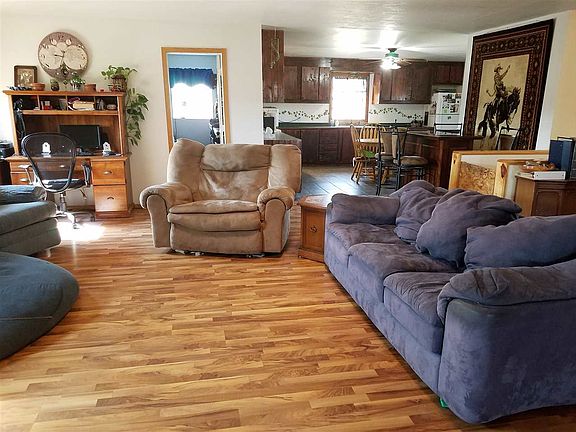 Look at this. 3000 sq. ft. home on 82.06 acres just off State Highway 26. There are 4 bedrooms and 1 full bath. The large eat in kitchen has an abundance of counter space and cupboards and is open to the living room. The front entry is tiled and has access to the basement stairs. The main floor laundry is just off the kitchen. The basement has walk out patio doors to the back yard. There is a sprinkler system in the front yard and a drip line on the shelter belt. There is a deck and ramp out front.