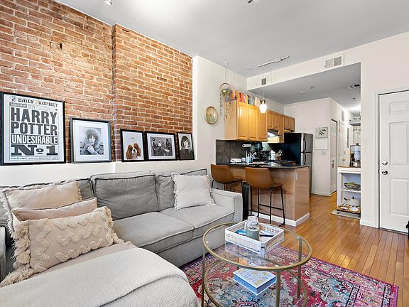 Renovated 1 bedroom 1 bath featuring hardwood floors throughout, stainless steel appliances, slate backsplash, granite countertops in kitchen and bathroom, C/A/C and heat, exposed brick, dishwasher and washer/dryer in unit. Available April 1, 2025. Showings start Friday 3/14.