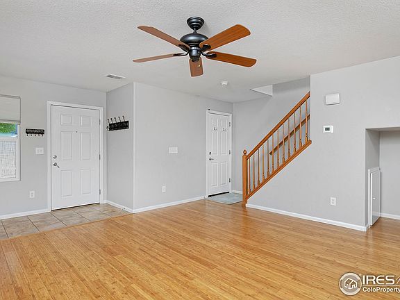 Enjoy incredible mountain views from the new flagstone patio of this beautifully updated townhome backing to open space. Three bedrooms upstairs with all new designer carpet and window coverings. The main level features a large living room with bamboo flooring, a spacious eat-in kitchen with granite counters and stainless steel appliances, a bonus half bath and laundry facilities (washer and dryer included). Close to everything Erie has to offer including quaint Old Town, great rec center, fabulous library and miles of trails. No metro district keeps taxes low and attached garage keeps your vehicle safe from the elements!