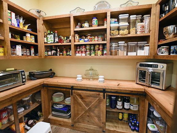 - Pantry, Ceiling Fan(s), Cathedral Ceiling(s), Sheetrock, Wood