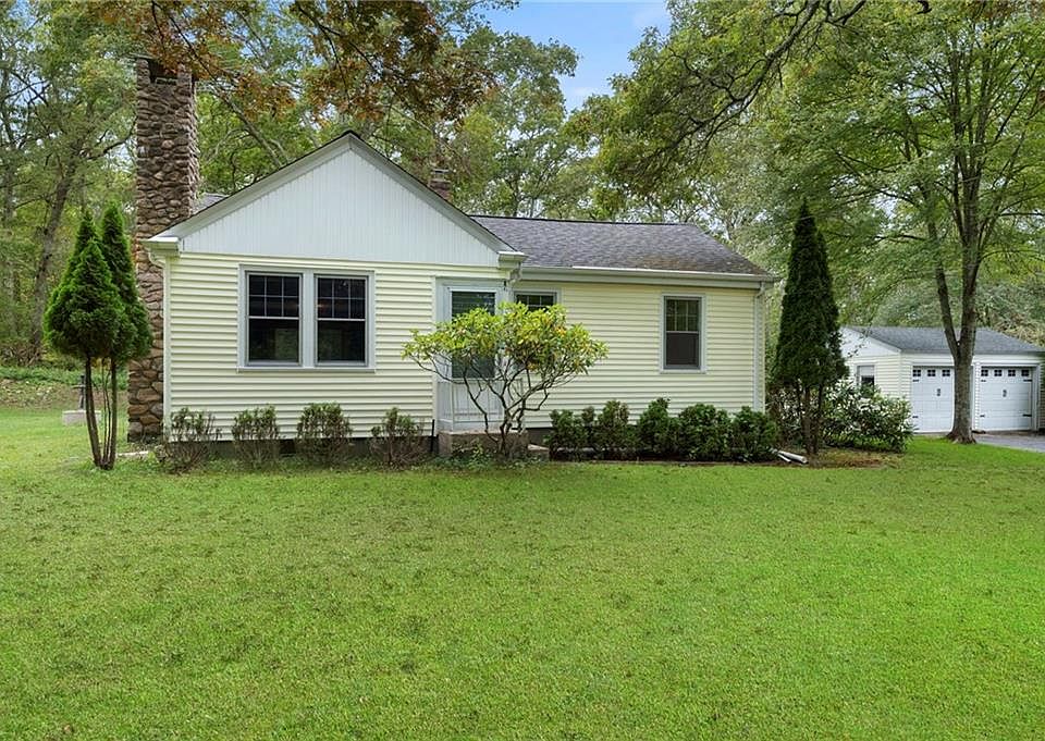 Nestled on 1.92 private and picturesque acres, this inviting 2-bedroom, 1-bath ranch offers a wonderful blend of charm, comfort, and potential. The living room is warm and welcoming with hardwood floors, a striking stone fireplace, and a sliding glass door that opens to a peaceful patio with views of the backyard. The kitchen features a center island, granite countertops, stainless steel appliances, and vintage cabinetry that adds character and style. With a some personal touches and updating, this home can truly shine and reflect your vision. Both bedrooms also have hardwood floors, creating a sense of continuity throughout the home. The lower level provides plenty of storage with the opportunity to create additional living space if desired. Outside, you’ll find a detached 2-car garage and a spacious horse barn, making this property as versatile as it is beautiful. All of this in a serene country setting, just a short drive to Westerly’s charming downtown shops and restaurants and the sandy shores of Misquamicut Beach.
