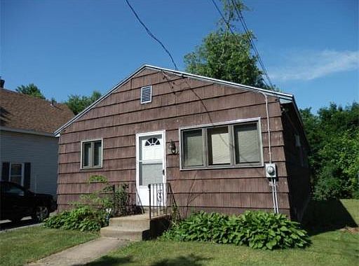 Starter ranch with 4 bedrooms, hardwood flooring in all rooms except one bedroom. Community Development work done in 2004, includes all new windows, new heating system, new garage door. Roof was replaced a few years prior to the Community Development work. Small kitchen with minimal cabinets, side entrance to kitchen, and another side entrance to lower level. the tucked under garage has a driveway around the back of the house, exterior is in rough shape, complete scraping and painting needed on the shingles and trim work. The four bedrooms are medium to small in size. Due to the exterior the property will not qualify for any government financing.