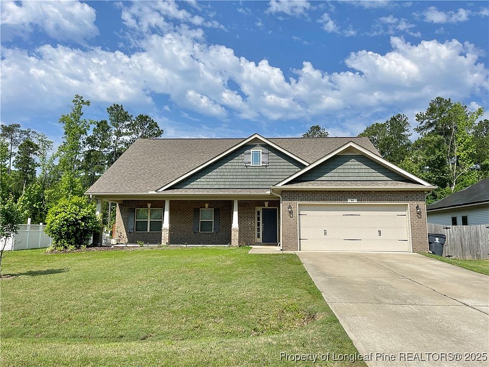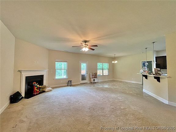 Available 6/15 Beautiful 5 Bedroom, 3 Bath Home with Bonus Room in Downtown Lillington. This spacious home offers comfort, style, and convenience in a desirable location. The first floor features a large front porch, a bright living room with a gas fireplace, a cozy breakfast nook, and a modern kitchen equipped with stainless steel appliances, quartz countertops, and a pantry. The primary bedroom includes a private en-suite bath, while three additional bedrooms, a full hall bath, and a separate laundry room complete the main level. Upstairs, you'll find a large bonus room, a fifth bedroom, and a third full bath perfect for guests, a home office, or additional living space. The fenced-in backyard includes a covered porch and backs up to open space with no rear neighbors. Pets upon approval.