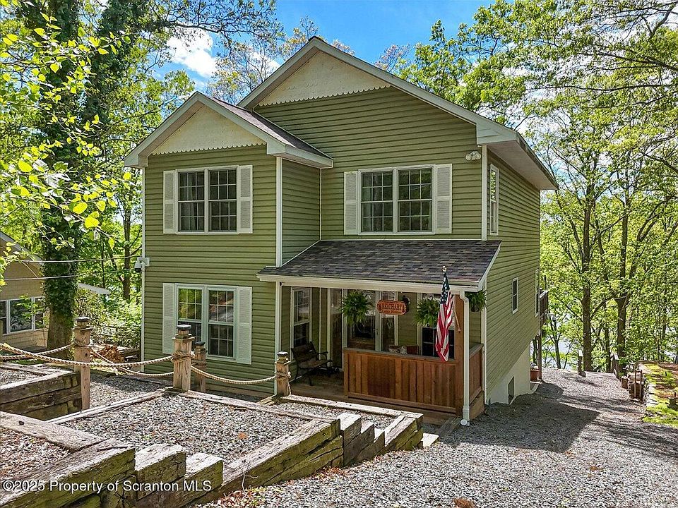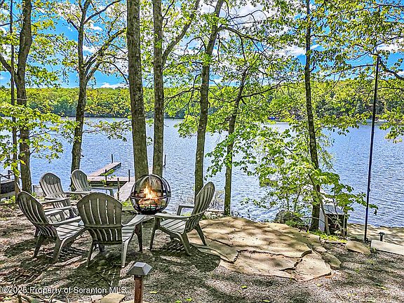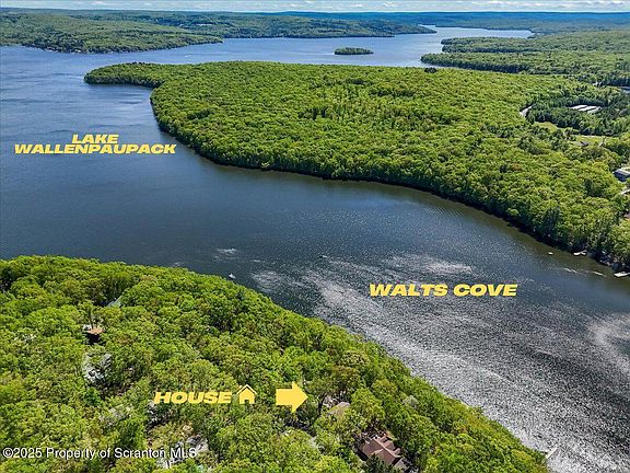 Wallenpaupack lakefront in excellent condition, set along the calm, sought-after waters of Walts Cove, this 4-bedroom, 3-bath lakefront retreat offers the perfect blend of privacy, recreation, and comfort--with no HOA restrictions. The open-concept main level is ideal for entertaining, while the oversized primary suite provides a private escape. The recently finished lower level added a 4th bedroom, a wet bar and additional space for the family and entertaining. Outside, enjoy the lakeside deck and new covered patio overlooking the lake. The lake access has been thoughtfully upgraded with stone steps and tiered landings leading to a firepit area, dining patio and your own private dock. Other recent upgrades include a new roof in 2024, landscape lighting, stainless steel kitchen appliances, washer/dryer, and a ductless heat/air conditioning system. Sold fully furnished, the home is truly turn-key and ready to enjoy. Located just a short drive to downtown Hawley for shops, restaurants, breweries, grocery shopping, recreational activities, and everyday essentials. Short-term rentals permitted with a Paupack Township permit. Whether you're looking for a full-time residence, weekend getaway, or income-producing rental, this property delivers the best of lakefront living in one of the area's most desirable locations.