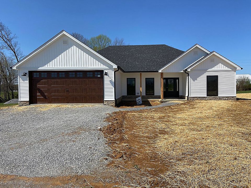 House under contract. Back up offers accepted. New construction. Modern farmhouse located on a large private lot. Spacious covered back porch overlooking Watertower Bypass. Black windows and gutters with cedar posts give this house an updated look. 3 bedrooms , 2 bath with 9 foot ceilings. Vaulted ceiling in kitchen/living area. Laundry room with mop sink and abundant cabinets. Driveway and sidewalk will be finished. Mirrors in bathroom will be installed. Please text 270-469-0307