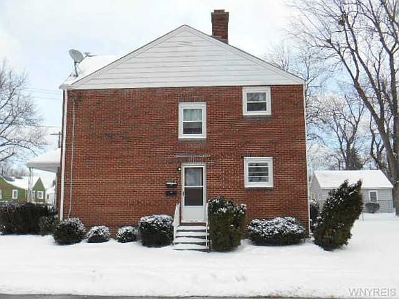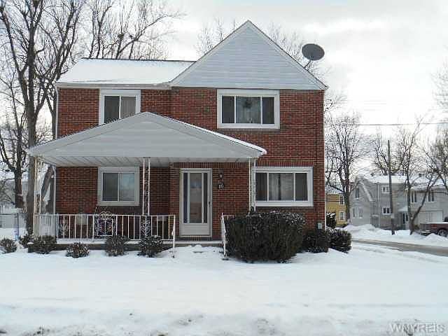 Great opportunity to own a turn key and maintenance free investment property in the village of Blasdell. This all brick double with 2 car detached garage features an upper/lower unit with 2 bedrooms, 1 full bath, eat-in kitchen and living room. Original HRDWD flooring under carpets. Lower unit only has central air and covered front porch. Full basement with glass block windows, separate utilities and laundry hook ups. Updates: house/garage roof; CTO, house/garage gutters, HWT; both units, carpeting; both units in bedrooms & living room, windows, breaker box; both units.