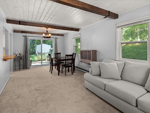 Move right into this fun end-unit with decorative beams in the living room and an open kitchen/dining area. Lounge on the large private deck overlooking  green space. Ample storage space in the large shed. Upstairs you will find two bedrooms and a modern bathroom. The oversized primary bedroom has three closets and a ceiling fan. This condo is cute as a button and ready for you to call home. Minutes to Essex center, local restaurants, farm stands, the UVM Medical Center, UVM, St. Michaels College, Champlain College, and Essex schools.
